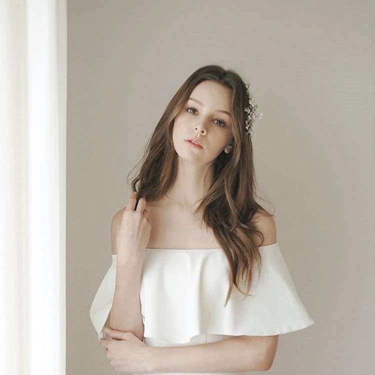 通販ブランド専門店シンプルな白い肩のウェディングドレスは芝生の結婚式の旅で屋外の軽いウェディングドレスを撮る