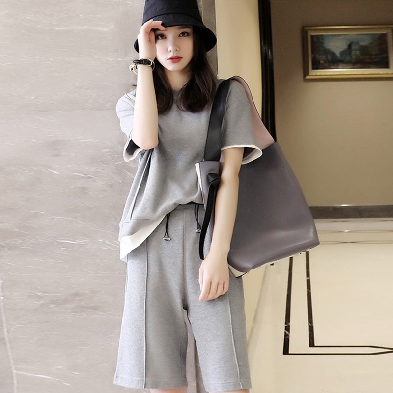 限定数量2点セット セットアップ 上下セット Tシャツ カットソー 半袖 ハイネック ミディアム丈 重ね着風 ハーフパンツ ワンプリーツ ウエストゴム 部屋着 ルームウエア かわいい 大人可愛い きれいめ