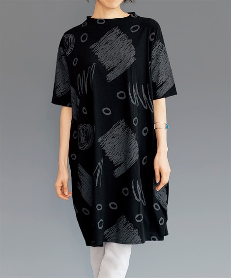 チュニック シニアファッション 幾何学柄プリントチュニック