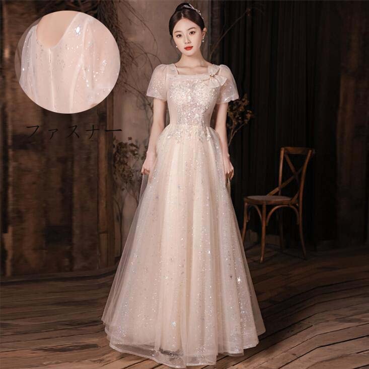 高質ロングドレス 韓国風 プリンセスライン 結婚式 洋服 花嫁の介添え人 ドレス 忘年会 半袖 ロング丈ワンピース 高級感 パーティードレス Aラインドレス 宴会ドレス ステージ 衣装 お嬢様 演奏会 着